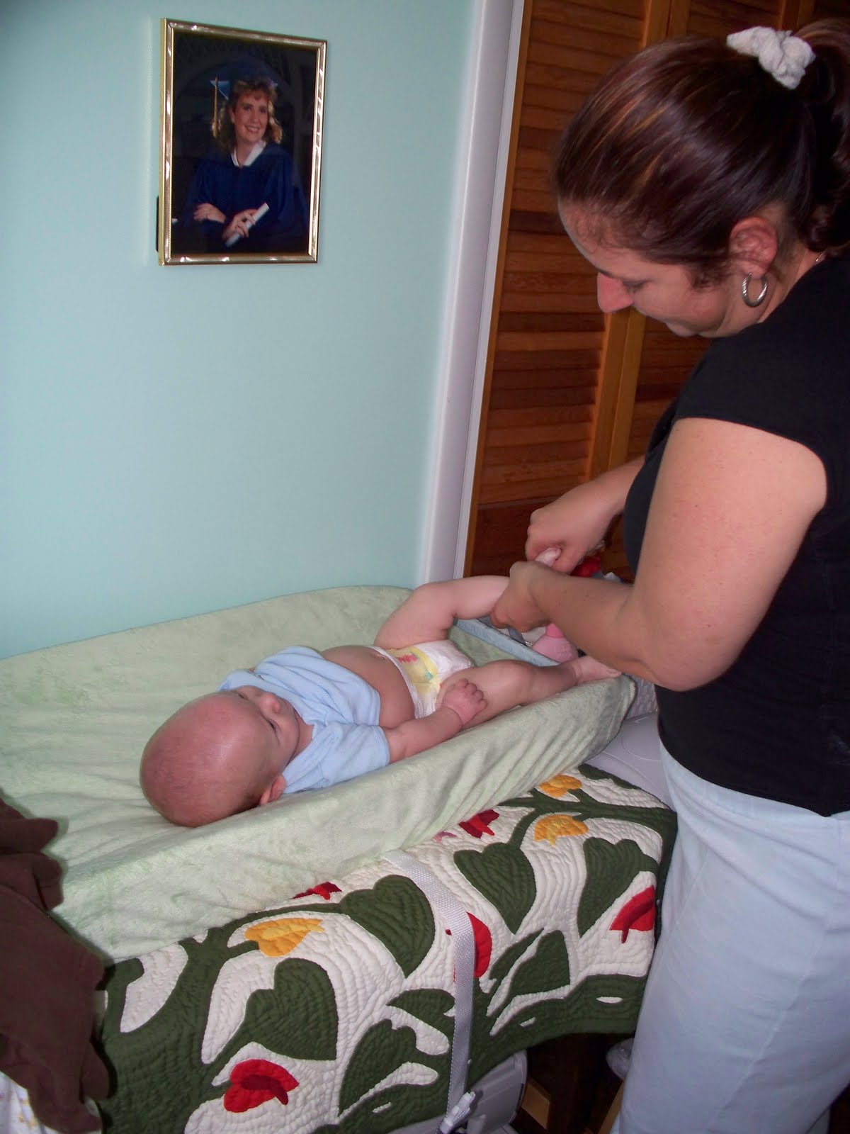 Jake and Katie were changing Gavin for the first time...they took turns changing his diaper and changing his outfits the night they stayed over. They love their little cousin!